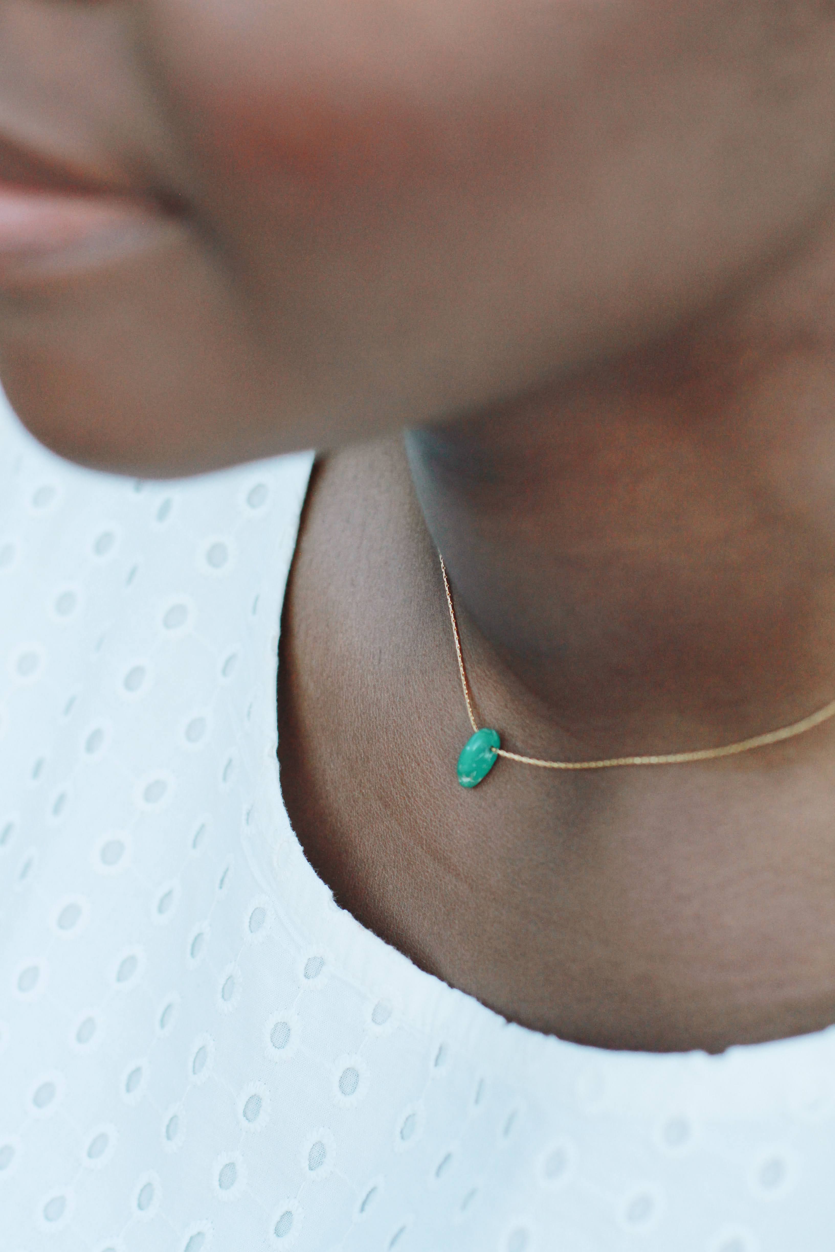 Our Turquoise Drop necklace captures the easy, carefree spirit of our Ibiza Collection, featuring a single piece of genuine turquoise suspended from a delicate 14k gold filled chain. The vibrant turquoise stone adds a natural pop of color, with organic variations that make each necklace feel uniquely yours.