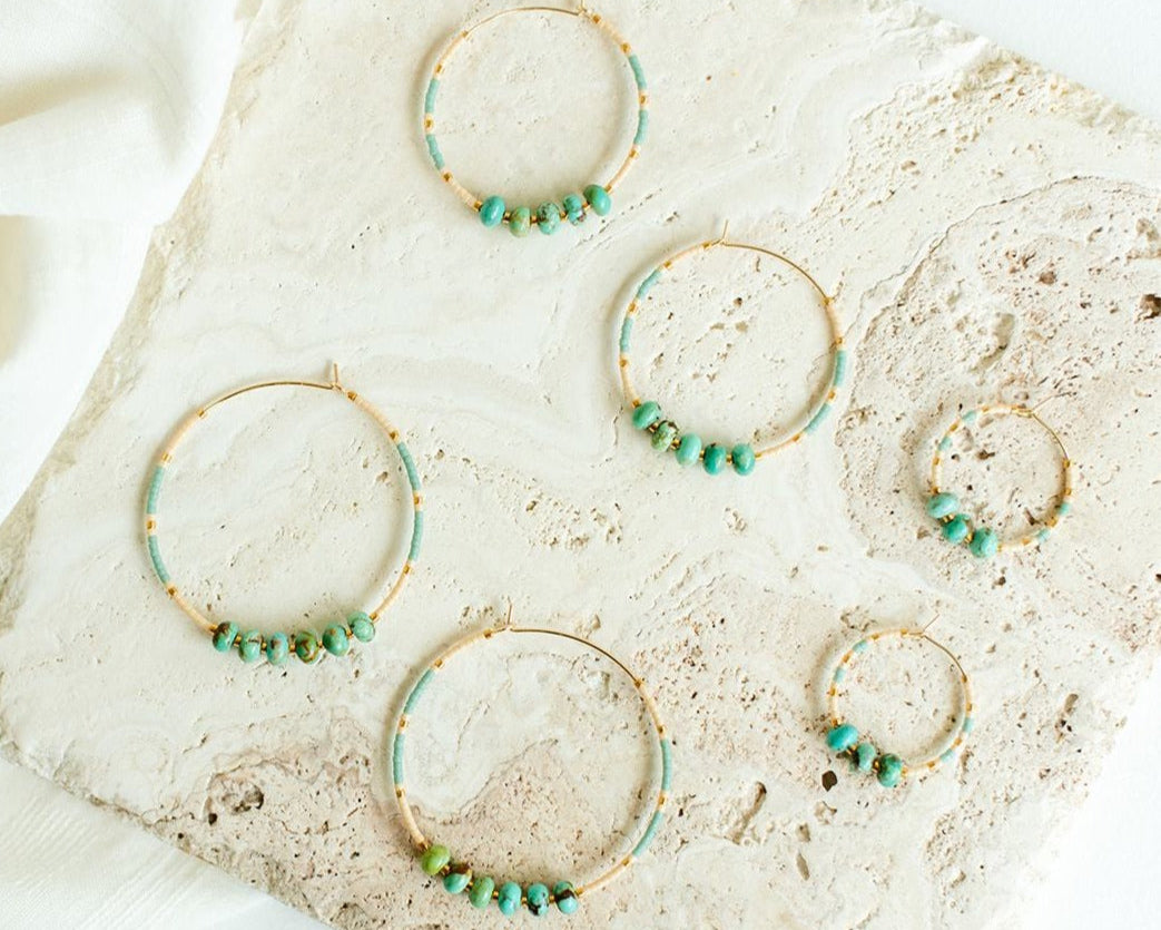 Our Turquoise Rondelle hoop is one of our best sellers! Inspired by the colors of the Southwest, they are lightweight and perfect for everyday wear. The beautiful turquoise color lets you dress them up or down.
