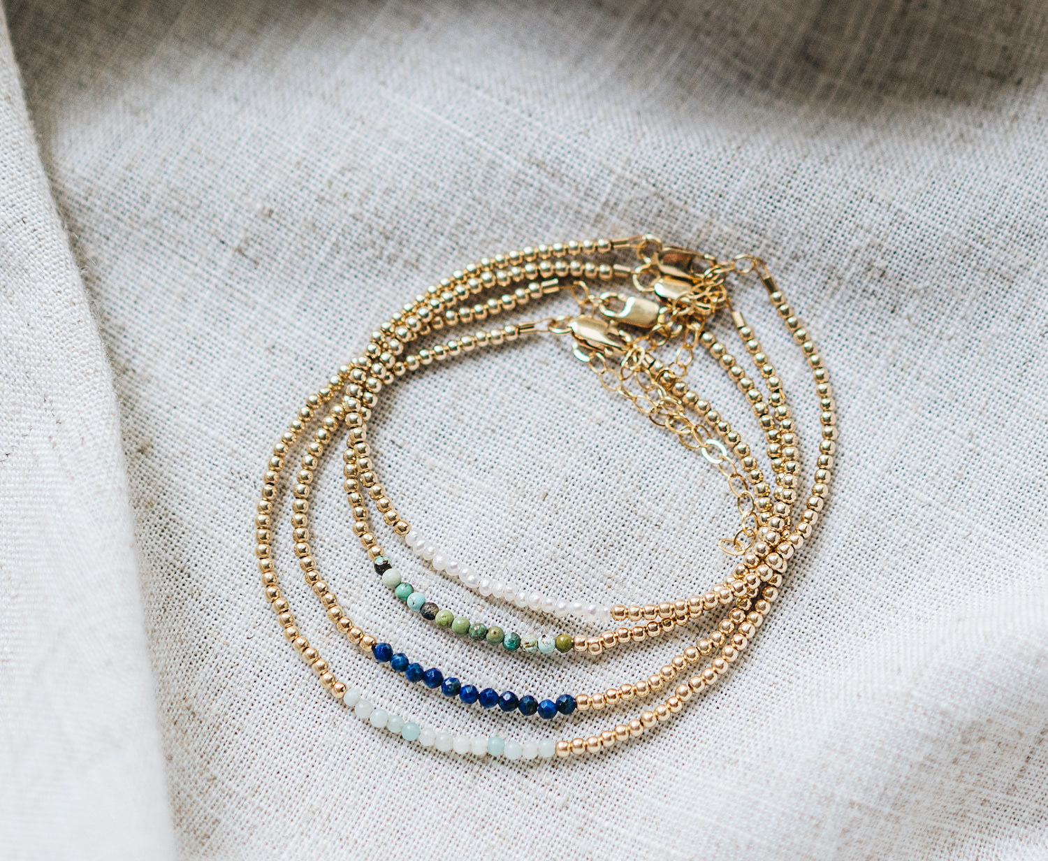 Our delicate gemstone bracelets are simple, delicate and timeless.