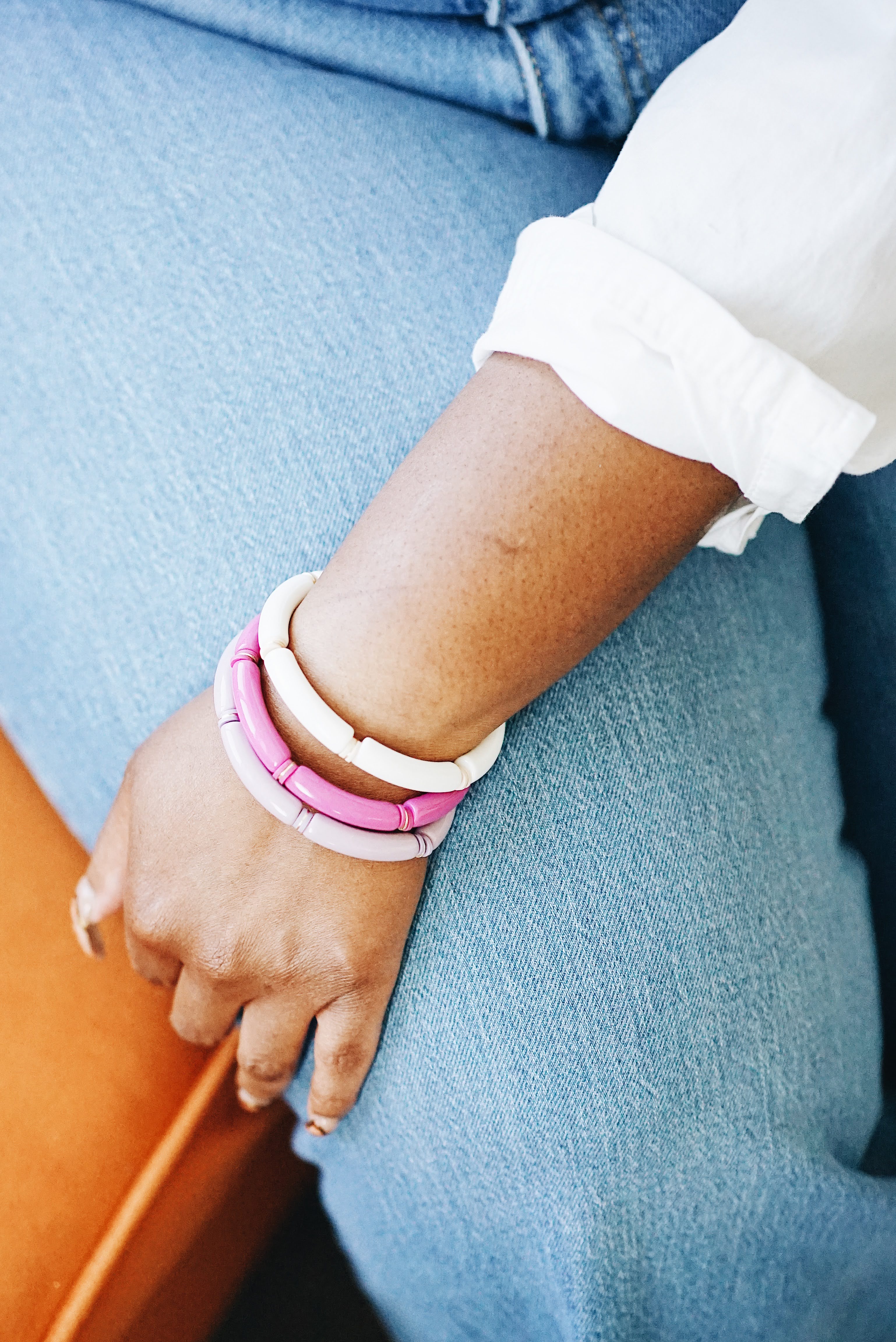 Add a pop of color and timeless elegance to your stack with our bamboo-inspired bangles. These beautifully sculpted bracelets feature a glossy enamel finish and a chic bamboo silhouette, perfect for elevating everyday looks or layering for a statement moment.