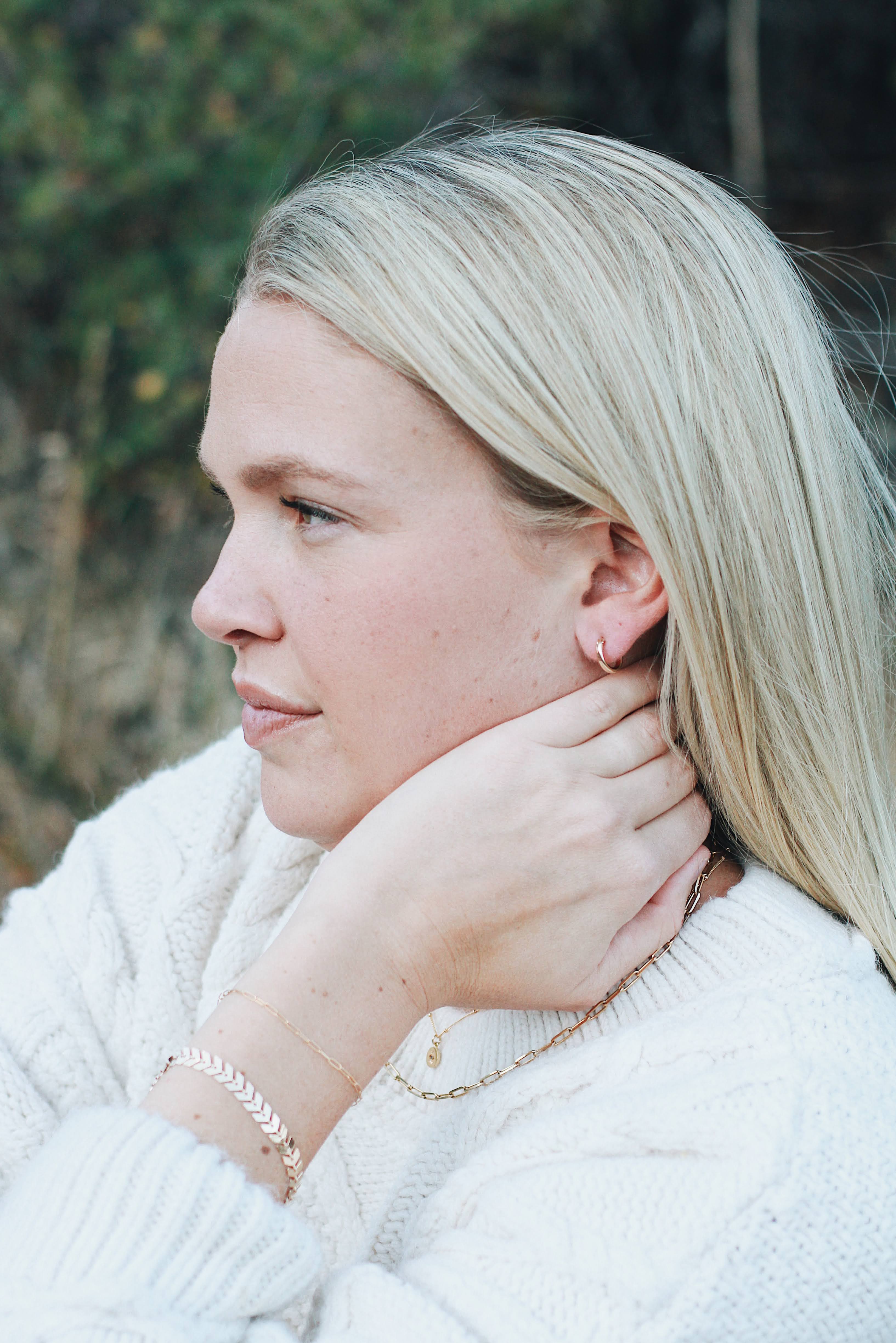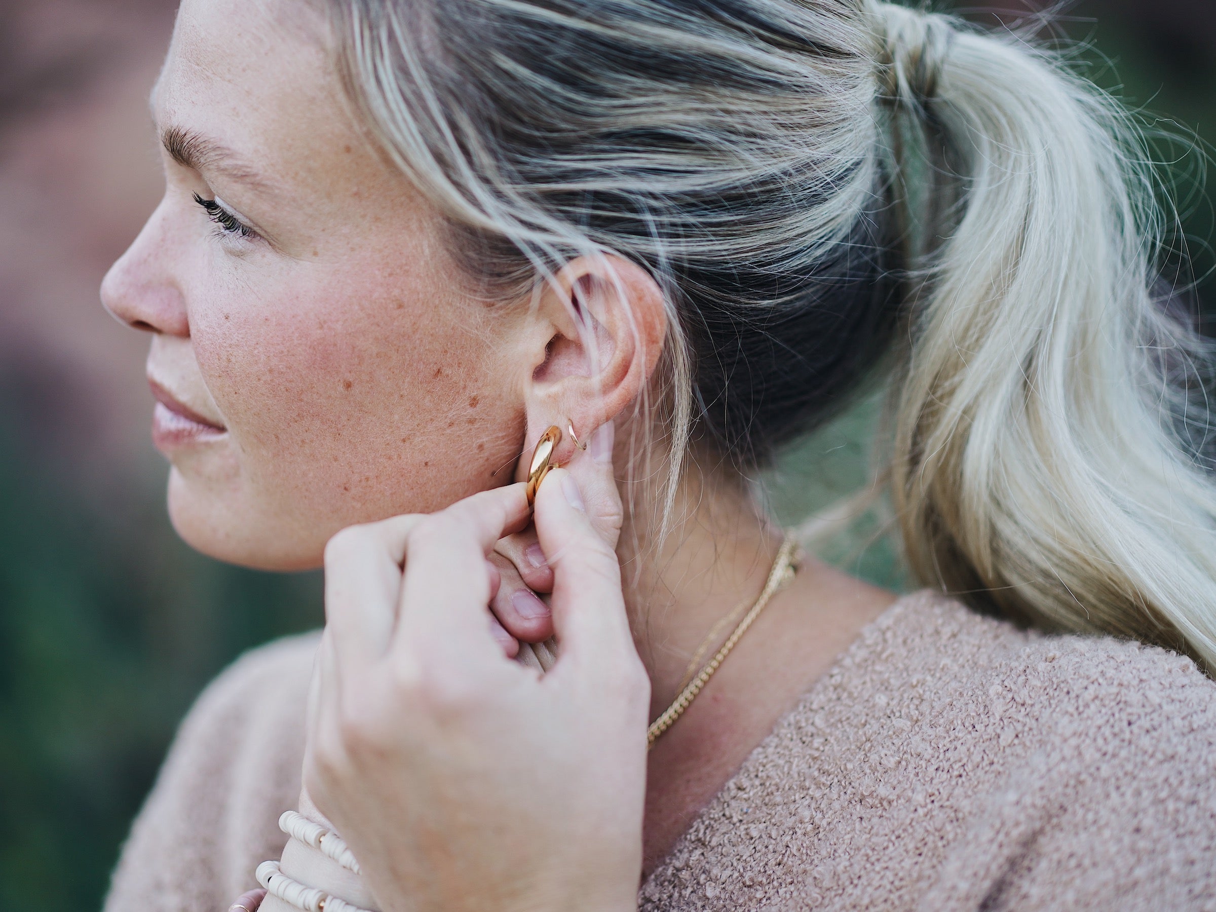 Our 13 mm gold filled everyday hoops feature a hinge clasp which ensures a secure fit.