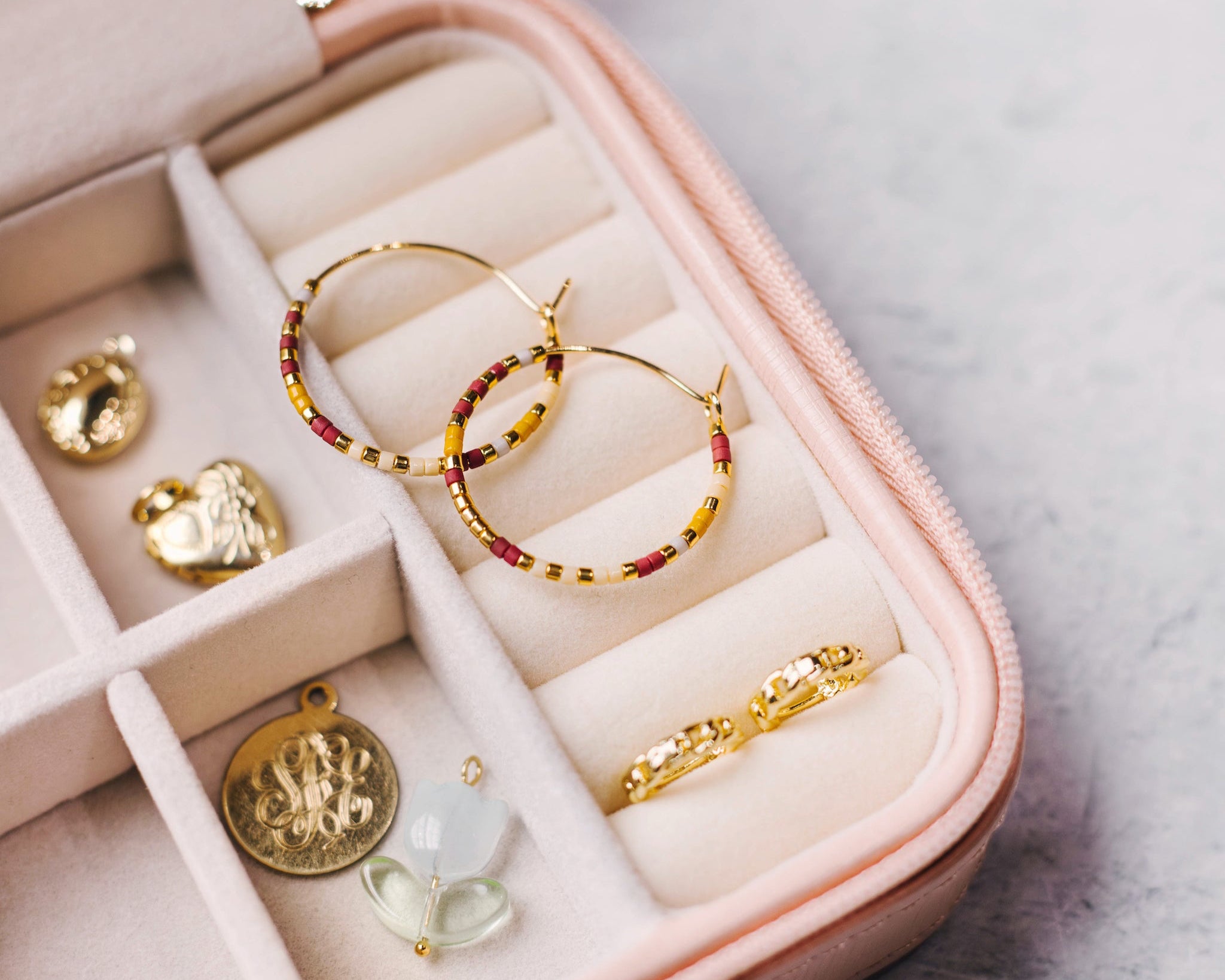 Our Luna hoop is part of our original collection! Perfect for everyday wear. They make a great travel earring because you have the ability to dress them up or down.