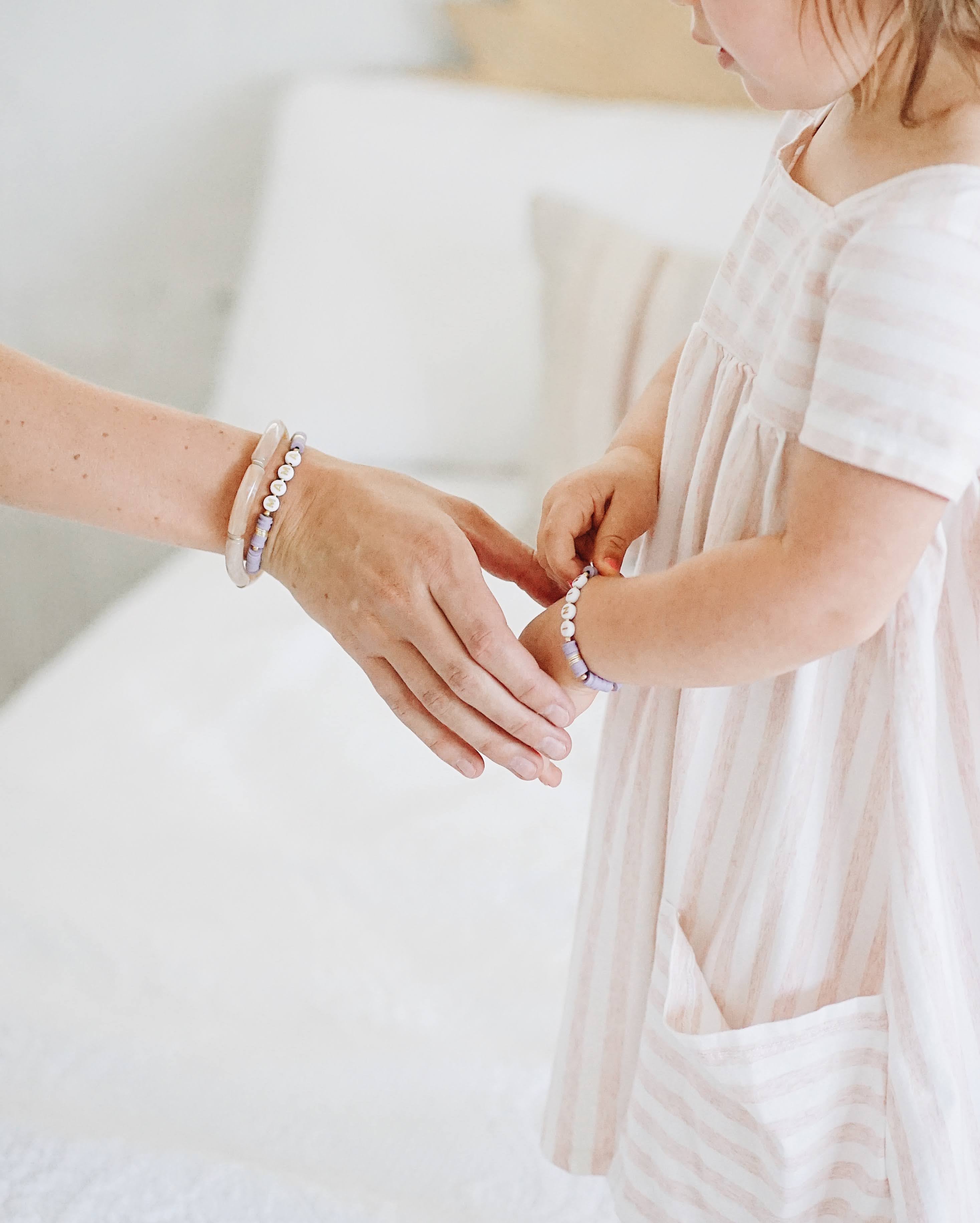 Our MAMA heishi beaded bracelet is perfect for everyday wear! Casual and lightweight, it can be dressed up or dressed down.