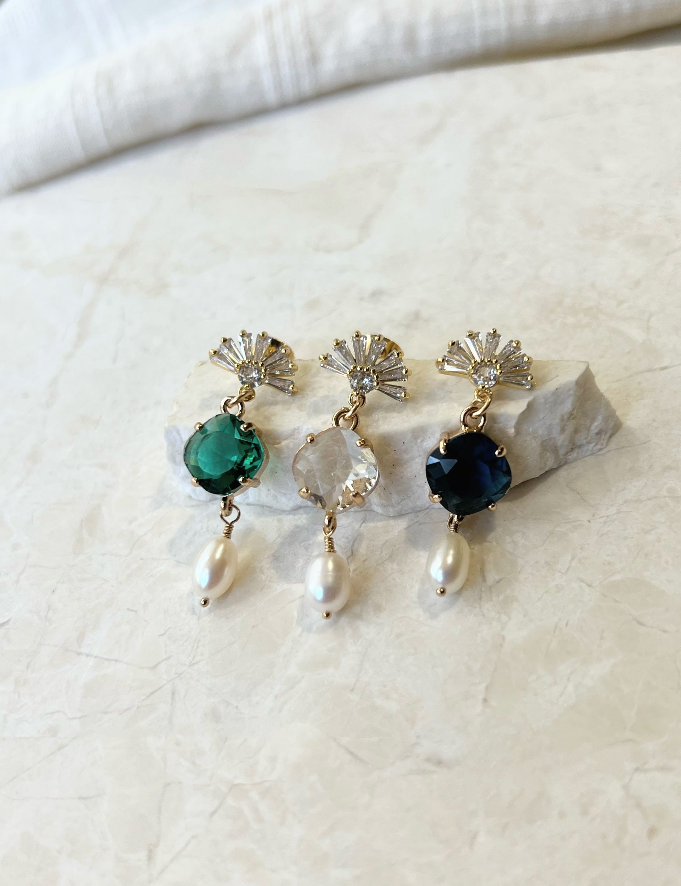Our Crystal Square Earrings are part of our crystal pearl collection. They are a colorful addition to this collection, and we love the elegance of this set. They are timeless, classic, yet the perfect statement piece.