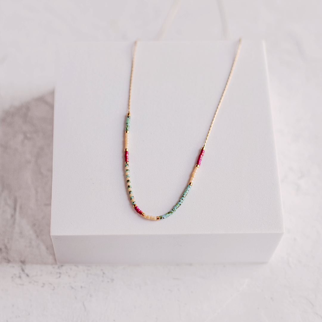 Our beaded snake chain necklaces are designed to feel effortless and timeless, featuring a smooth 14k gold filled snake chain accented with delicate beads that add a quiet hint of color and warmth.